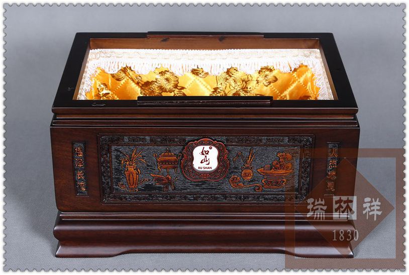 姥爷过世了,我们希望给老人买一个好的骨灰盒,小叶紫檀太贵,估计也没有真货,大叶紫檀价格还可以接受,在淘宝上看了很多,发现假货太多,最后在天猫店选定了中野品牌骨灰盒,3天就到货了,料是真的,做工很细致,尤其是手工雕刻的花板,很见功力。