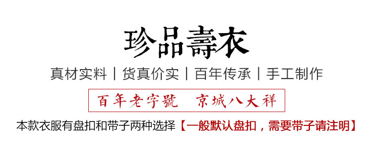 妈妈穿衣服很讲究的,我转遍了西安的很多寿衣店,这寿衣质量大同小异,都很差,我在网上找到这家叫瑞林祥的寿衣,北京的,还是一家百年老字号,我选好花色后,又提供了身高、体重、腰围等数据,付款发货,寿衣收到后,真是不错,家人满意。