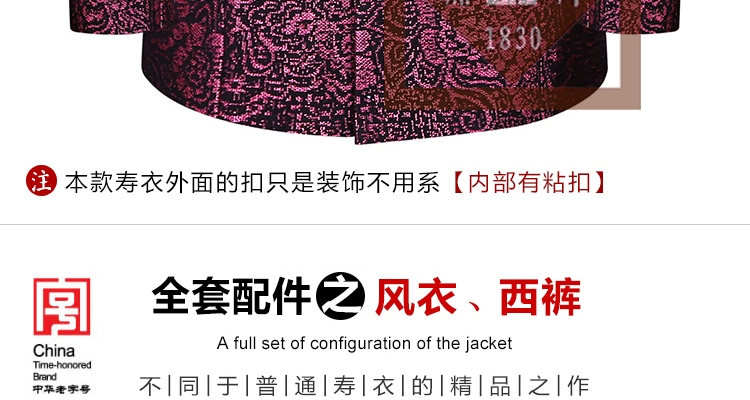 妈妈穿衣服很讲究的,我转遍了西安的很多寿衣店,这寿衣质量大同小异,都很差,我在网上找到这家叫瑞林祥的寿衣,北京的,还是一家百年老字号,我选好花色后,又提供了身高、体重、腰围等数据,付款发货,寿衣收到后,真是不错,家人满意。