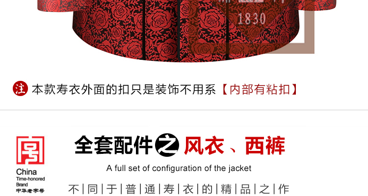 妈妈穿衣服很讲究的,我转遍了西安的很多寿衣店,这寿衣质量大同小异,都很差,我在网上找到这家叫瑞林祥的寿衣,北京的,还是一家百年老字号,我选好花色后,又提供了身高、体重、腰围等数据,付款发货,寿衣收到后,真是不错,家人满意。